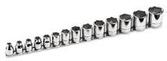 | AJKD | Nonsupply Items and Quantities | Contains 1 ea. chrome plated, 6 point; 3/8 in. female sq. drive; standard length; fractional sizes 1/4, 5/16, 3/8, 7/16, 1/2, 9/16, 11/32, 5/8, 11/16, 3/4, 13/16, 7/8, 15/16 and 1 inch |